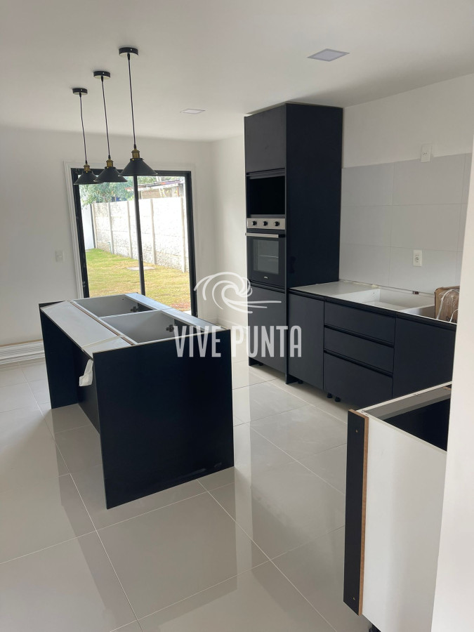 -Cocina con muebles bajo mesada, muebles aéreos, isla con estantes y cajones. Mesada de granito, doble pileta, horno, anafe y campana. También cuenta con una puerta ventana hacia el fondo y pileta con vista al frente.